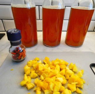 Add flavoring / sweetener to the bottles: this could be fruit purée or juice, sugar, ginger, etc. Make sure to leave some headspace.